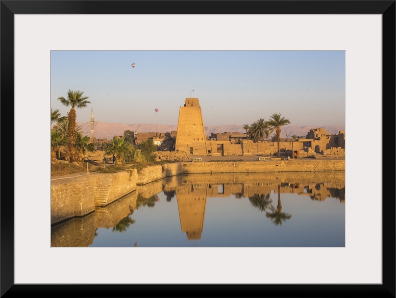 <p>Egypt, Luxor, Karnak Temple, Hot air balloons rise over the Sacred Lake</p>