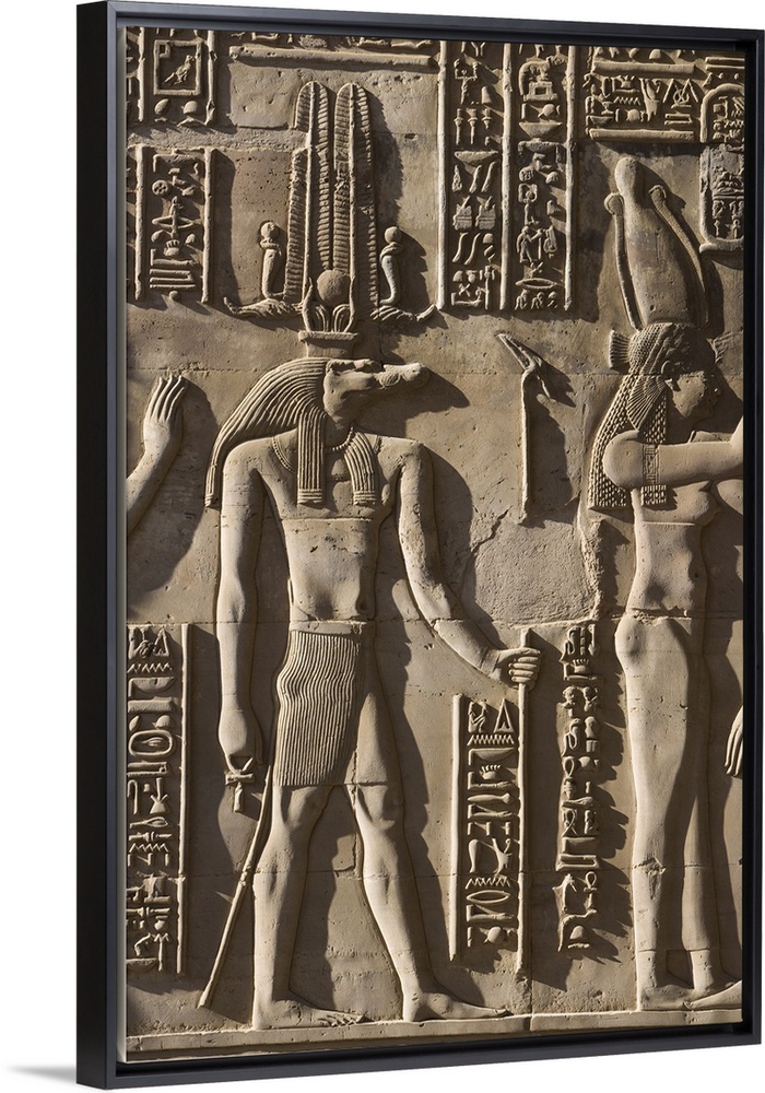 <p>Egypt, Pom Ombo. Sidelight makes the hieroglyphics stand out in strong relief on the walls of Pom Ombo temple.</p>