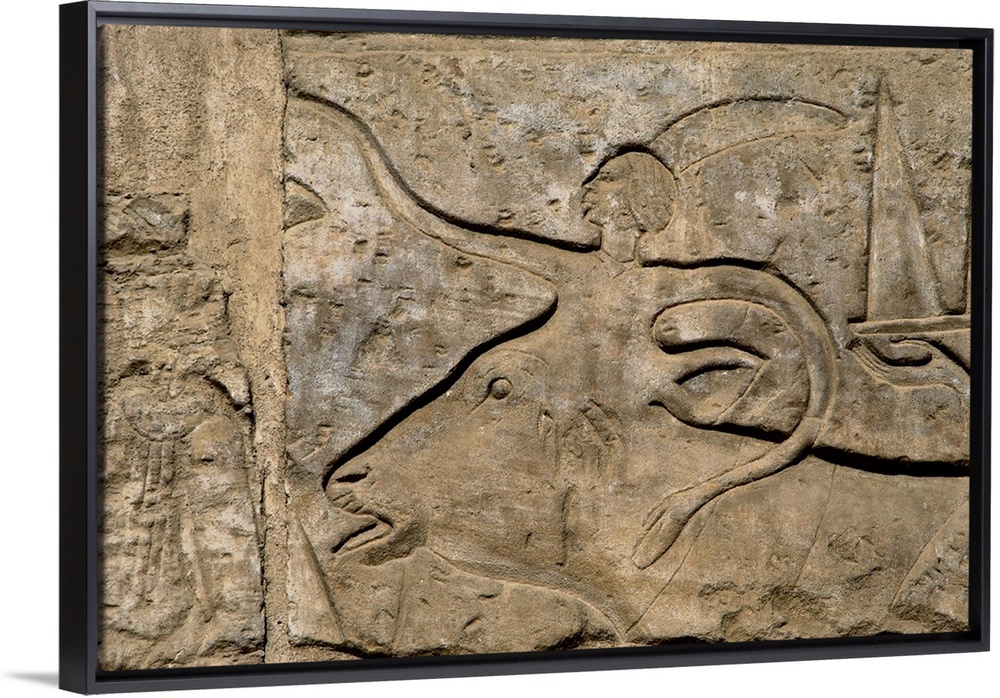<p>Egyptian Art. Egypt. Relief of the religious procession of the great bulls, to commemorate the opening of the great pylon of Luxor built by Ramses II. Bull being led to sacrifice. First Courtyard of Ramses II. Luxor Temple. Dynasty XIX. (1320-1200 BC) New Kingdom.</p>