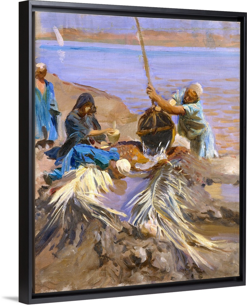 <p>Sargent visited the Middle East several times in connection with a series of murals on the theme of the history of religion, for which he had received a commission from the Boston Public Library in 1890. Traveling in Egypt in 1890-91, he painted this canvas, which shows a man using a simple irrigation device called a shaduf to fill a ditch, from which others are drinking and waiting to fill containers. Like many of his contemporaries, the artist may have believed that life in the region was essentially unchanged since biblical times.</p>