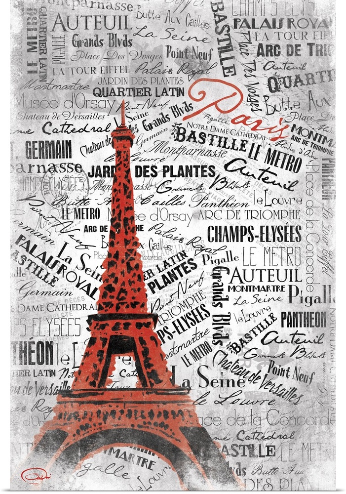 Art Onrei Art Graphic Art Red Wall Art Paris Eiffel Tower Typography & Calligraphy