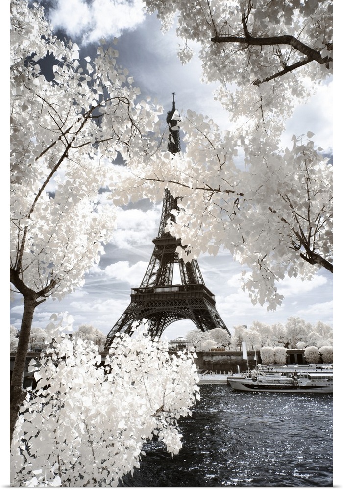 <p>A view of the Eiffel Tower in Paris, made in infrared mode in summer. The vegetation is white and rendering of the sky is deep blue. From the "Another Look" series.</p>
