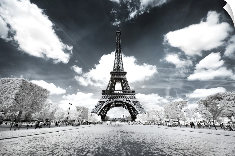 <p>A view of the Eiffel Tower in Paris, made in infrared mode in summer. The vegetation is white and rendering of the sky is deep blue. From the "Another Look" series.</p>