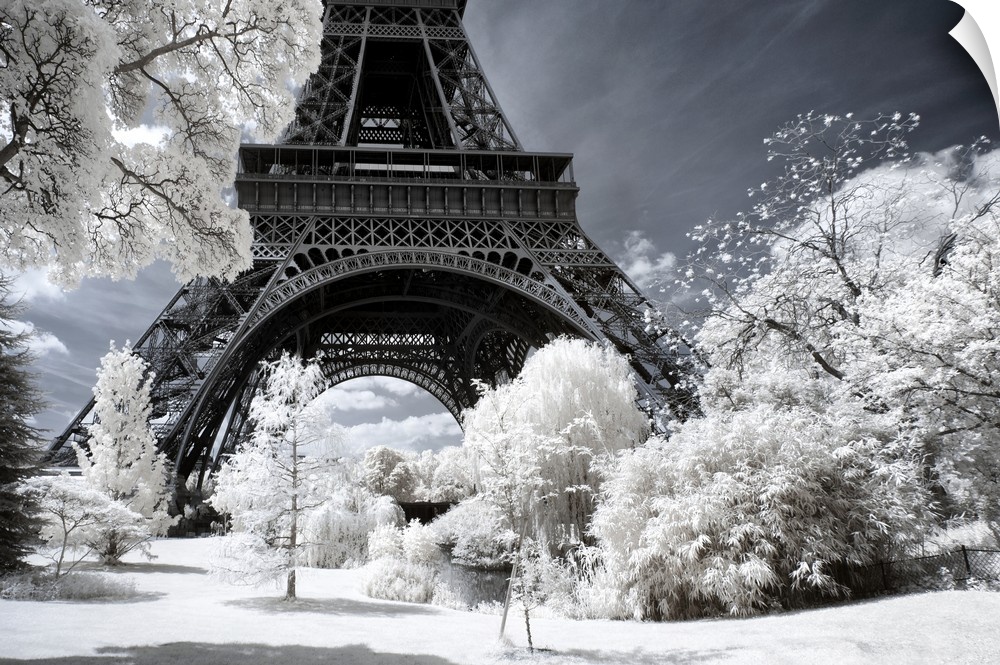 <p>A view of the Eiffel Tower in Paris, made in infrared mode in summer. The vegetation is white and rendering of the sky is deep blue. From the "Another Look" series.</p>
