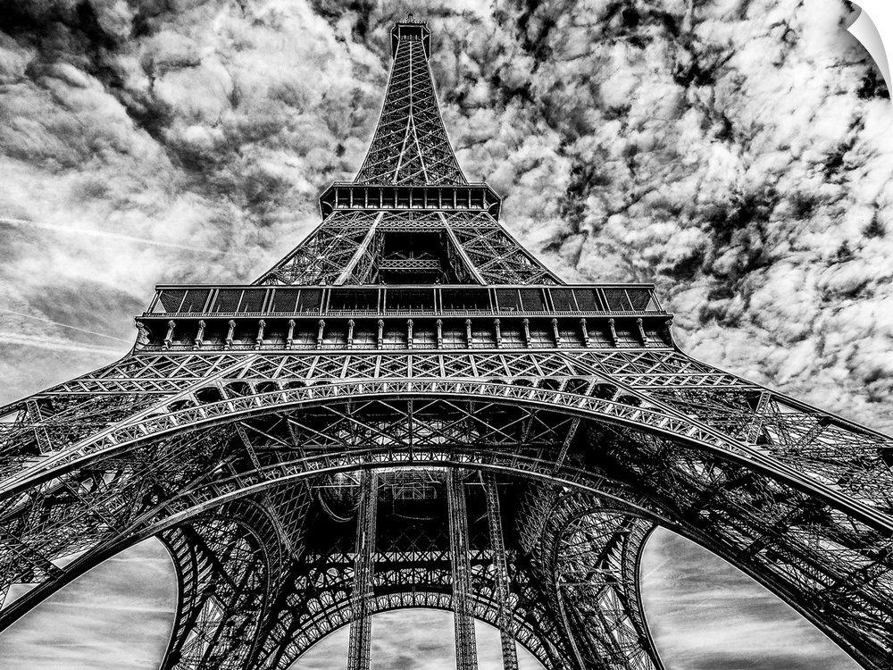 <p>High contrast black and white photo of the Eiffel Tower.</p>