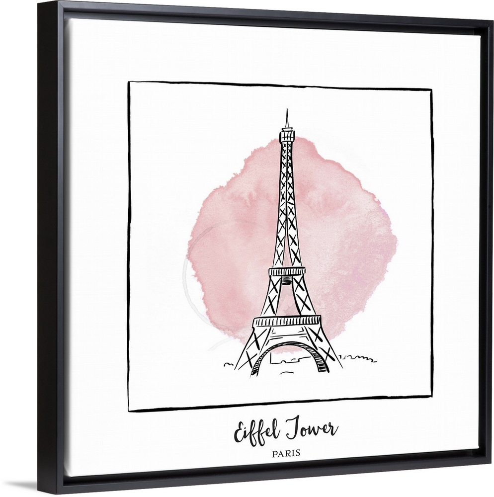 <p>An ink illustration of the Eiffel Tower in Paris, France, with a pink watercolor wash.</p>