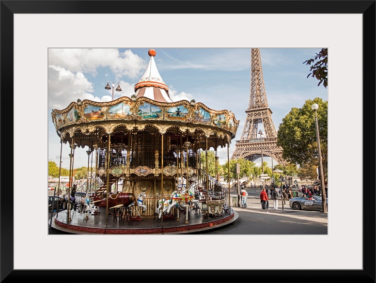 <p>Photograph of the Eiffel Tower Carousel with the Eiffel Tower in the background.</p>