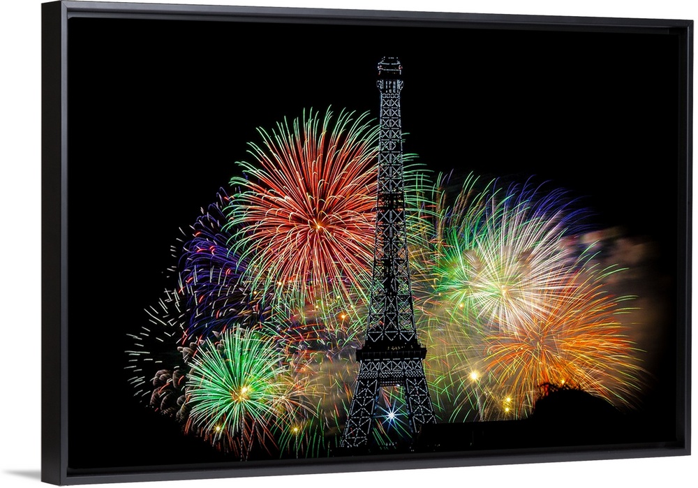 <p>Fireworks exploding in the air behind the Eiffel Tower in Paris.</p>