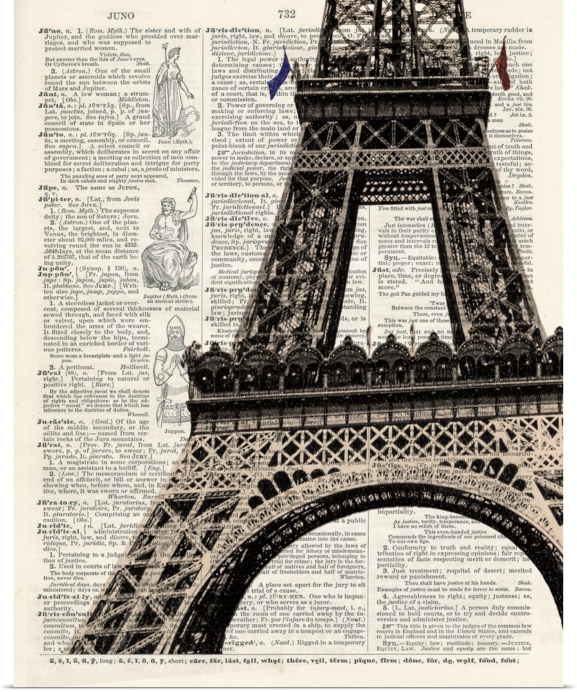 <p>Contemporary artistic use of a page from a dictionary with the Eiffel Tower on top of the text.</p>