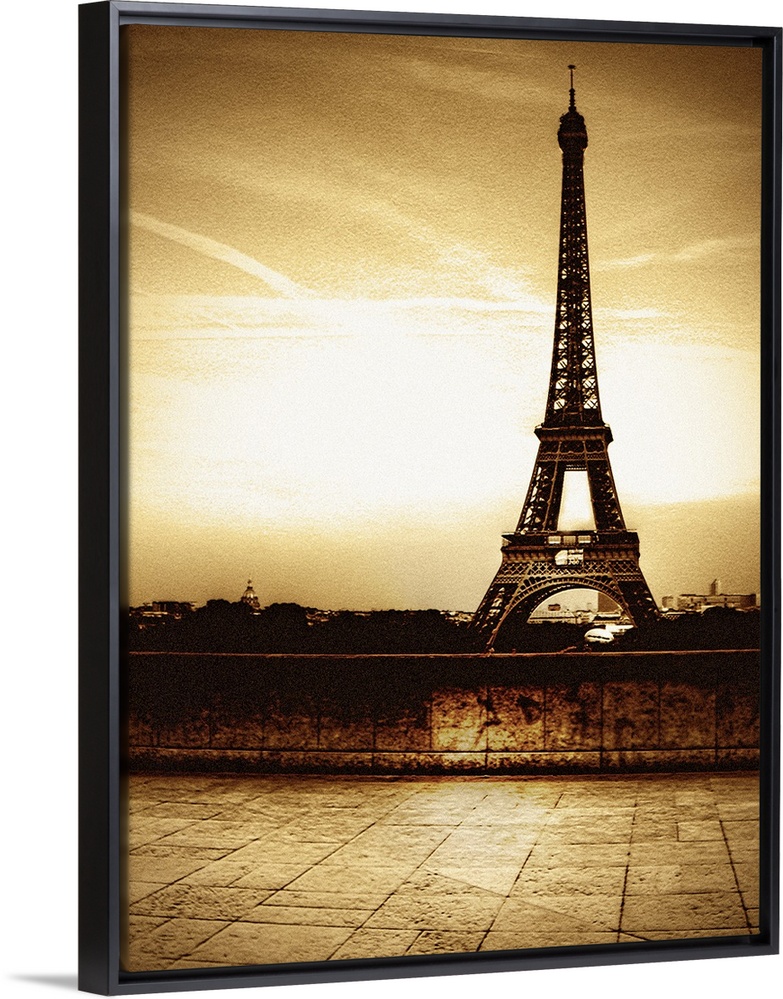 <p>Tall photo on canvas of the Eiffel Tower in sepia tones.</p>