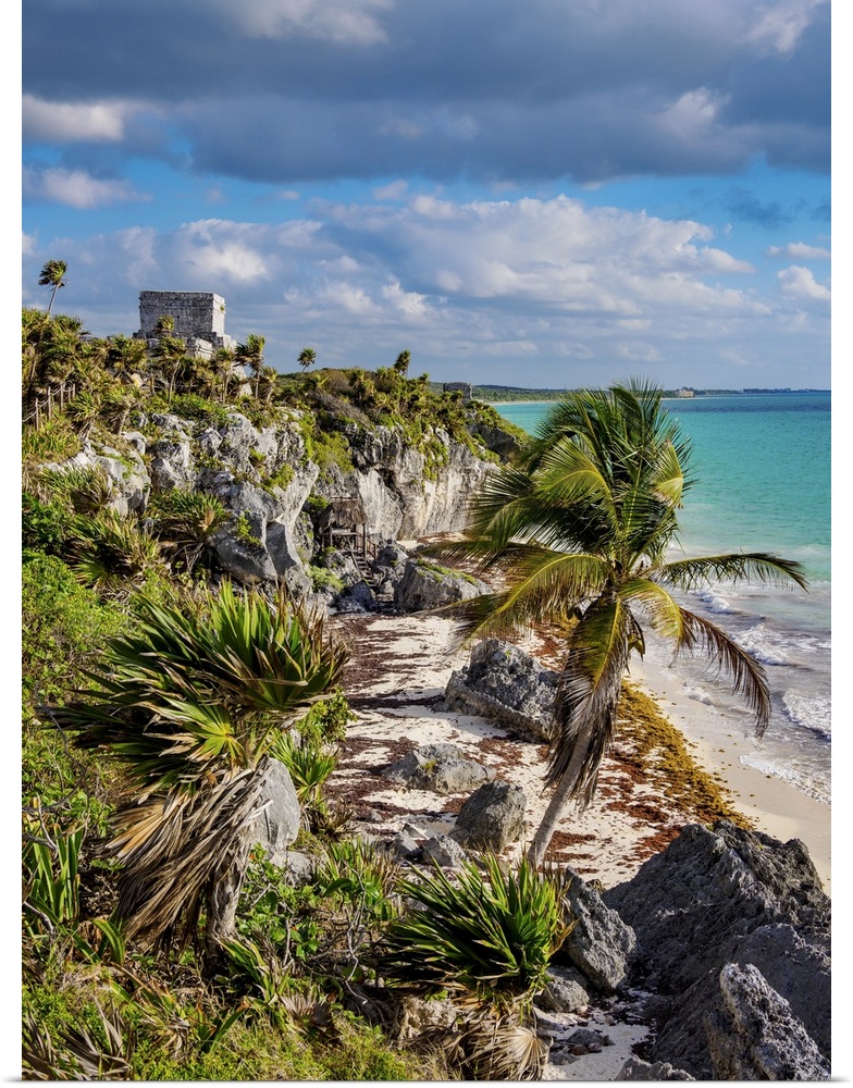 <p>View towards El Castillo and Temple of the God of Wind, Tulum Archeological Site, Quintana Roo State, Mexico.</p>
