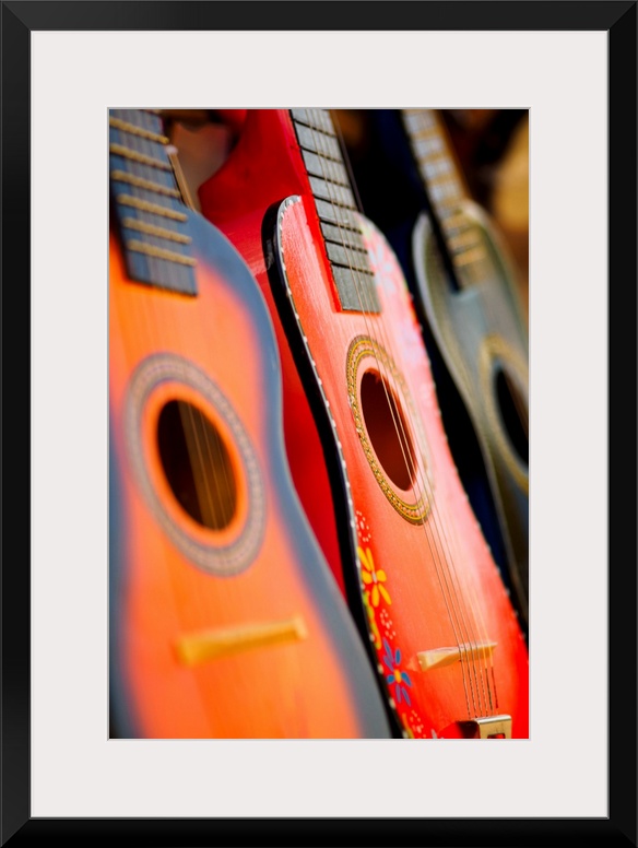 <p>North America, United States, California, Los Angeles, El Pueblo de Los Angeles Historic Monument, small guitars on display in market.</p>