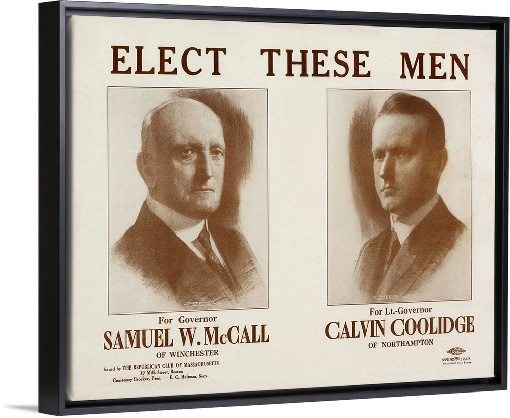 <p>ELECT THESE MEN. For Governor, Samuel W. McCall. For Lt. Governor of Winchester, Calvin Coolidge of Northampton. The pair were elected in 1915, 1916, and 1917. In 1918 Coolidge was elected Governor of Massachusetts.</p>
