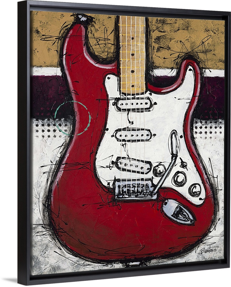 Art Contemporary Art Bruce Langton Music, Movies and TV Music Instruments Guitar Painting Red Wall Art