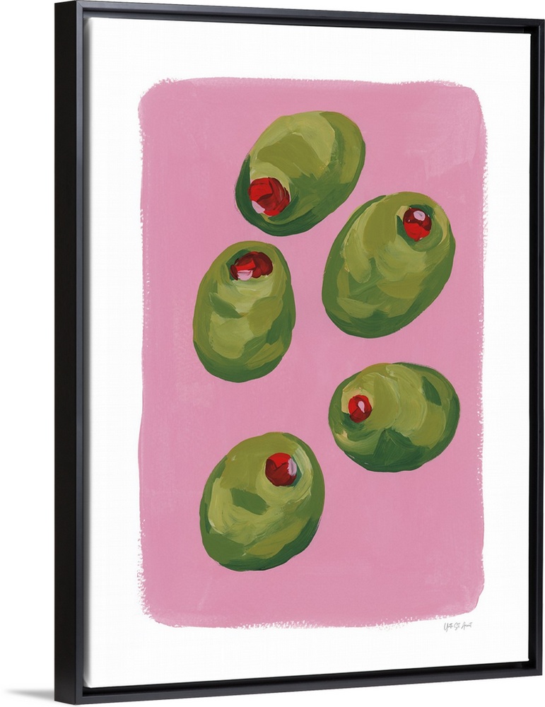 Art Decorative Art Food and Drink Food Fruit Olive Painting Pink Wall Art Yvette St. Amant