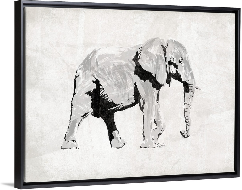 <p>Contemporary illustration elephant facing the right, with left front leg lifted as if about to walk.</p>