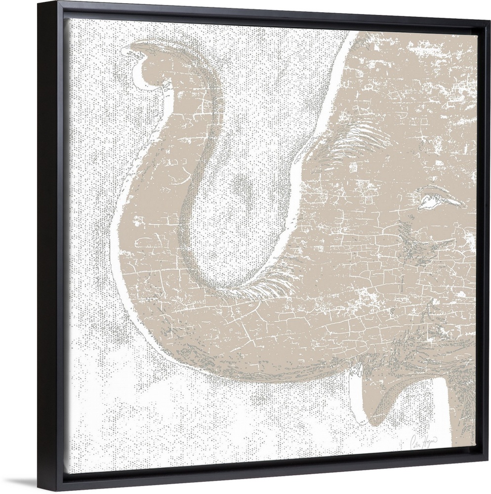 <p>Elephant head and curled trunk drawn in a contemporary pencil modern style.</p>