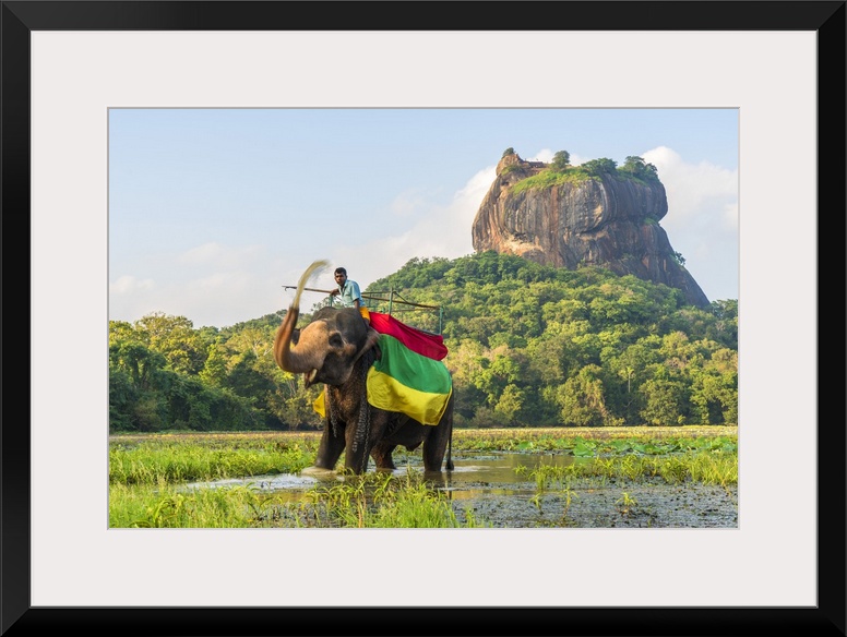 <p>Elephant ride with Lion Rock, Ancient Rock Fortress behind, Sigiriya, Sri Lanka.</p>