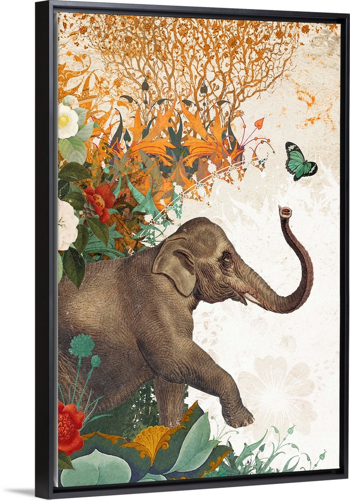 <p>Elephant and butterfly with ornate background</p>