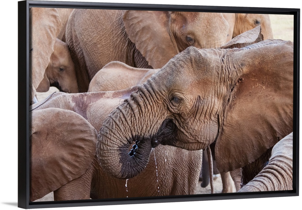 <p>Elephants (Loxodonta africana) drinking, Taita Hills Wildlife Sanctuary, Kenya, East Africa, Africa</p>