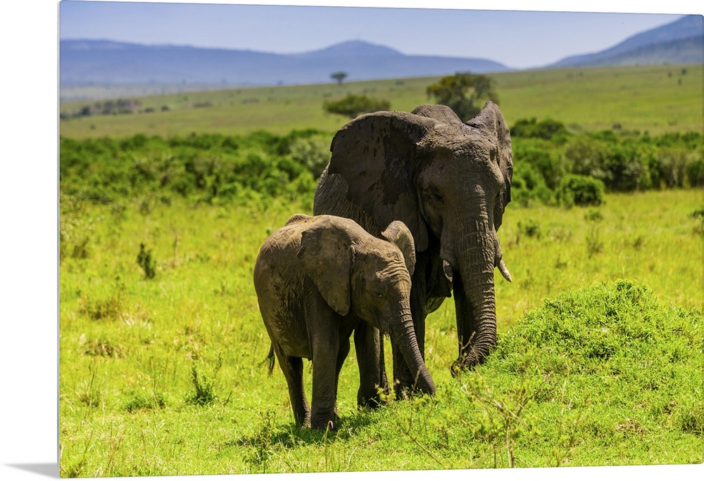 <p>Elephants seen on a Safari in the Maasai Mara National Reserve, Kenya, East Africa, Africa</p>
