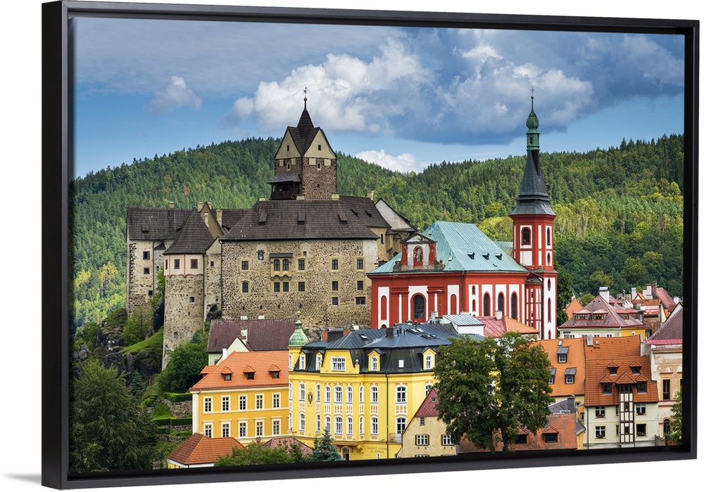 <p>Elevated scenic view of Loket Castle and St. Wenceslas Church, Loket, Sokolov District, Karlovy Vary Region, Bohemia, Czech Republic</p>