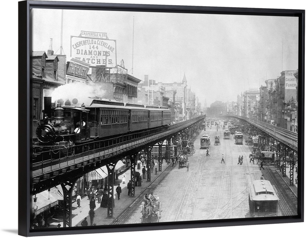 <p>Elevated trains roll over busy streets in Manhattan's Bowery neighborhood.</p>