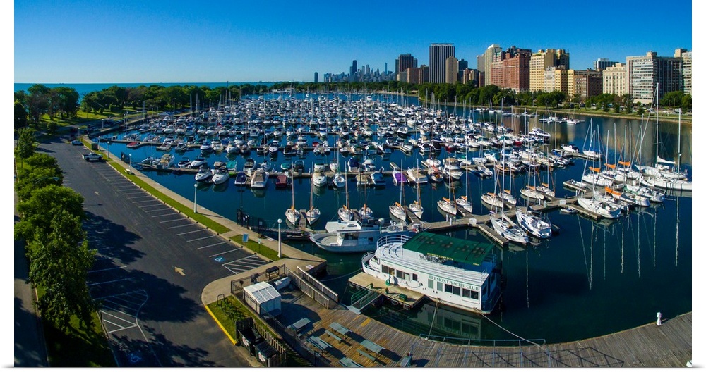 <p>Elevated view of Belmont Yacht Club, Chicago, Illinois, USA</p>