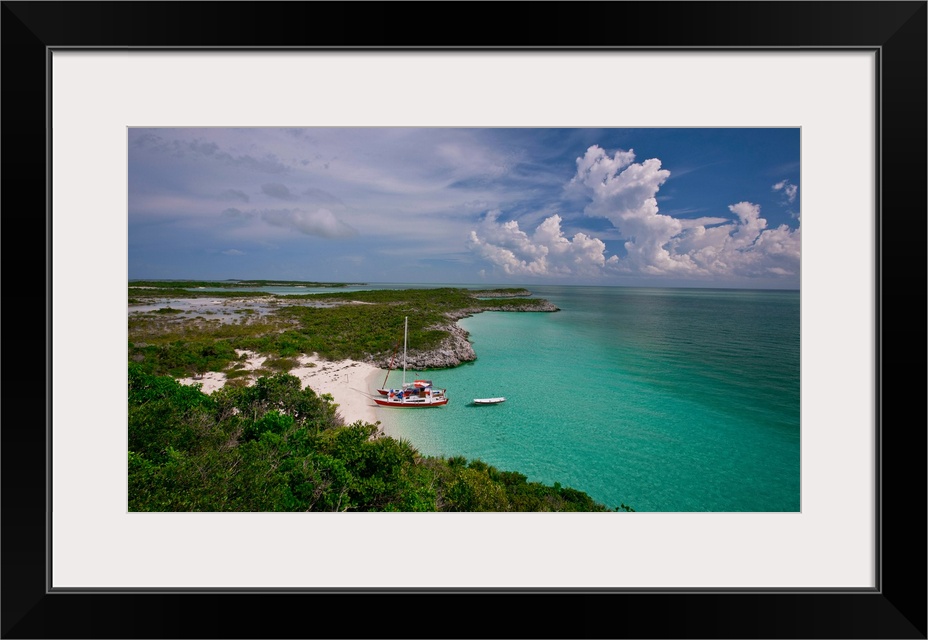 <p>Elevated view of boat in Caribbean Sea, Great Exuma Island, Bahamas</p>