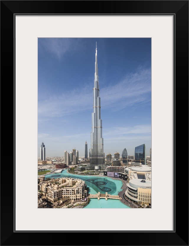 <p>UAE, Dubai, Downtown Dubai, Burj Khalifa, world's tallest building as of 2016, elevated view</p>