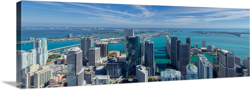 <p>Elevated view of city at the waterfront, miami, miami-dade county, florida, USA.</p>
