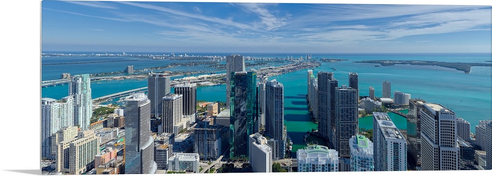 <p>Elevated view of city at the waterfront, miami, miami-dade county, florida, USA.</p>