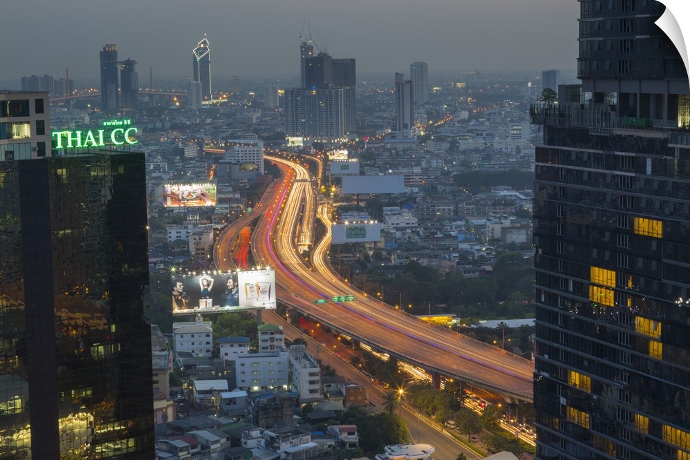 <p>Elevated view of city skyline, Bangkok, Thailand, Southeast Asia</p>