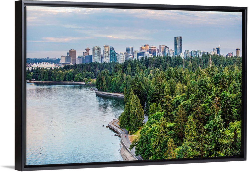 <p>Elevated view of downtown Vancouver and Stanley Park Seawall Path in British Columbia, Canada.</p>
