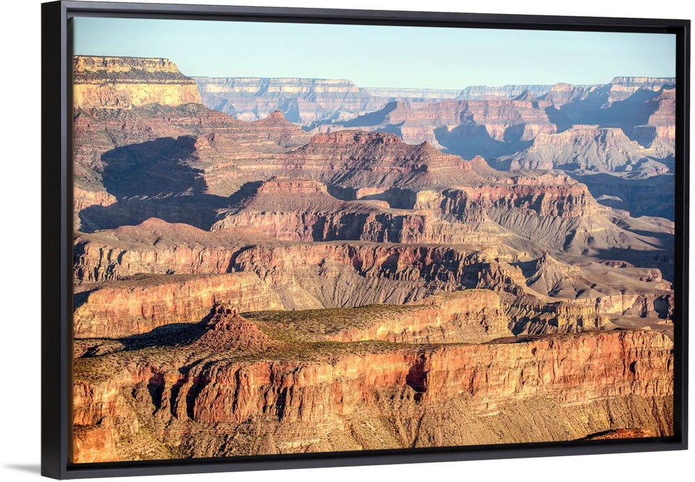<p>Elevated view of geological formations at sunrise in Grand Canyon National Park, Arizona.</p>