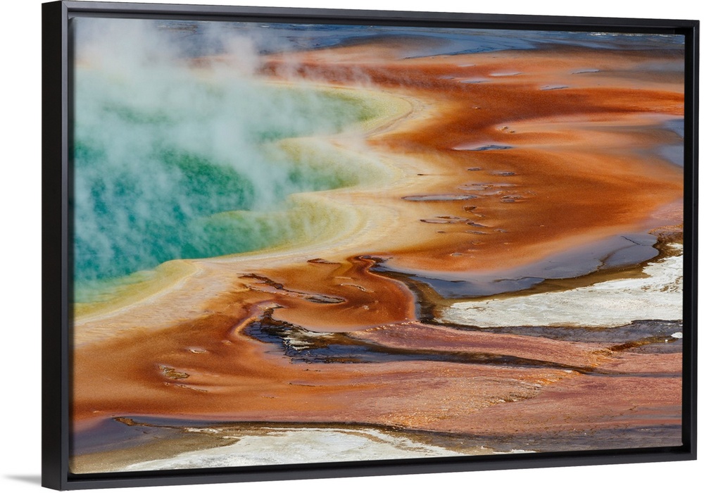 <p>Elevated view of Grand Prismatic Spring, the largest in the U.S. and third largest in the world, Midway Geyser Basin, Yellowstone National Park, Wyoming/Montana.</p>