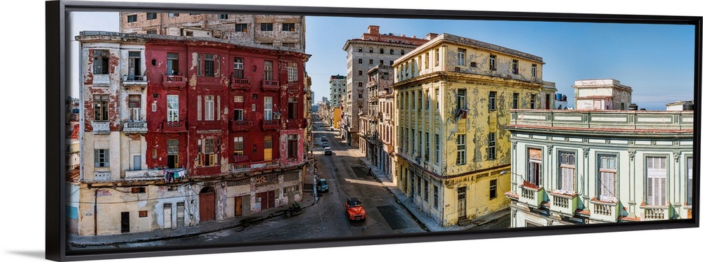<p>Elevated view of houses on the street in a town, Havana, Cuba</p>