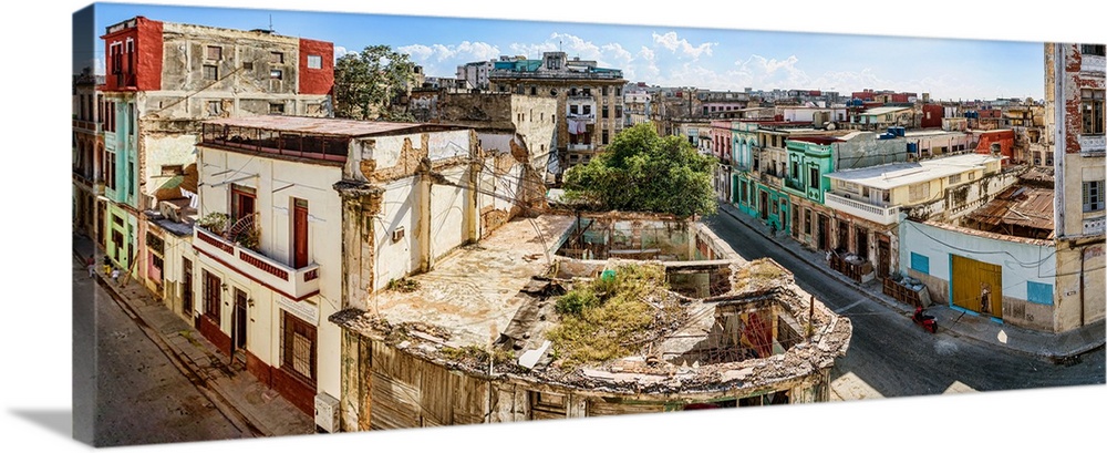 <p>Elevated view of houses on the street in a town, Havana, Cuba</p>
