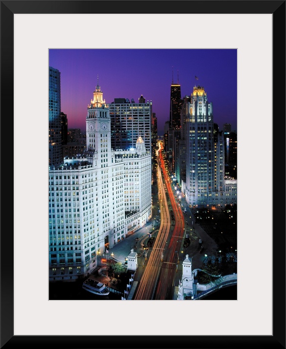 <p>Elevated view of Michigan Avenue at dusk, Chicago, Cook County, Illinois, USA</p>