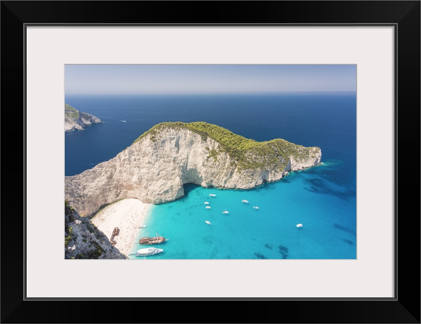 <p>Elevated view of Navagio beach, also known as Shipwreck Beach, Zakynthos, Ionian islands, Greece, Europe.</p>