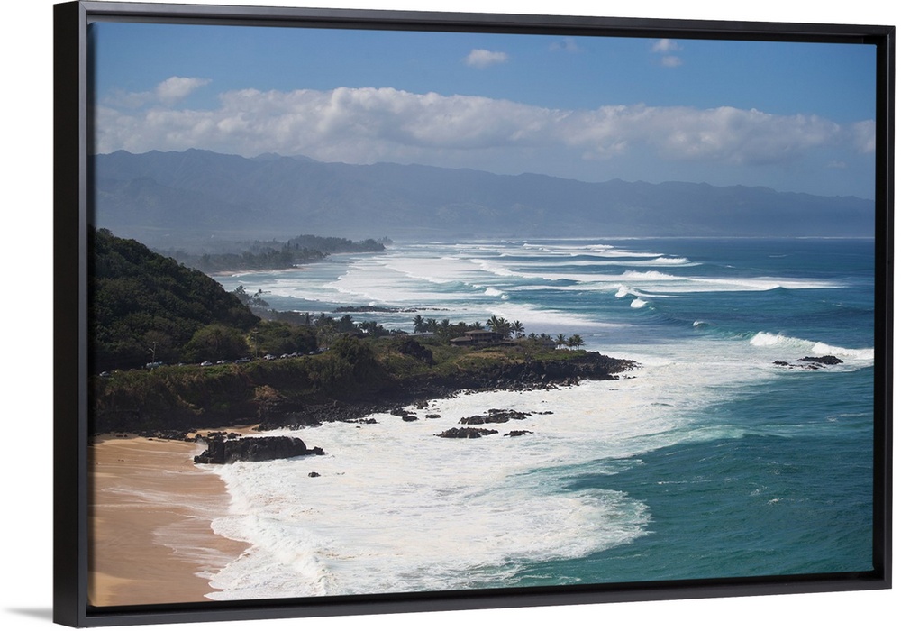 <p>Elevated view of surf on beach, Hawaii, USA</p>