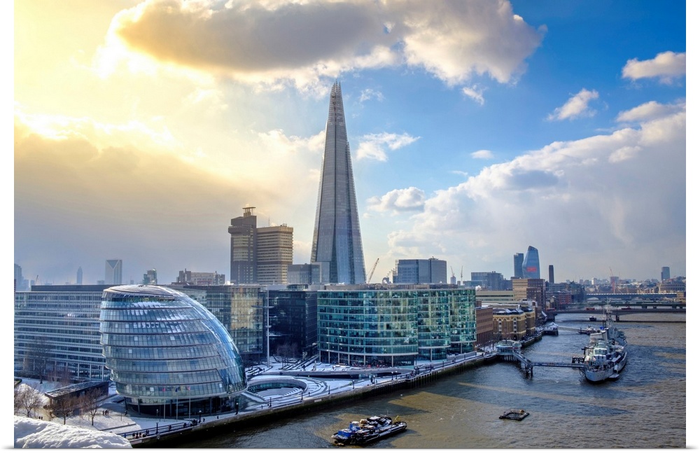 <p>United Kingdom, England, London, Elevated View Of The Shard, City Hall And The Thames Path In The Snow</p>