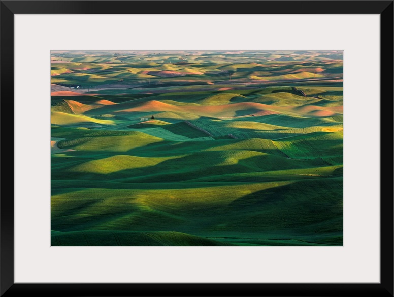 <p>Elevated view of undulating wheat crop, Palouse region of eastern Washington.</p>