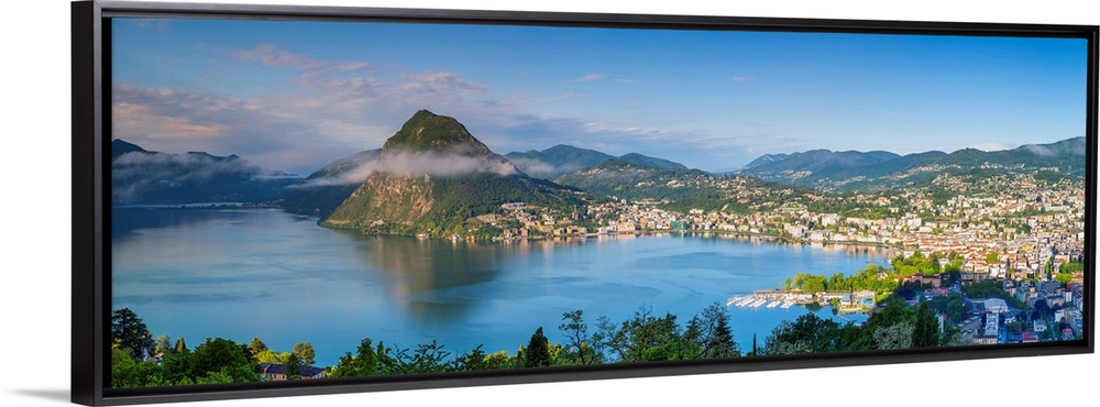 <p>Elevated view over Lugano from Monte Bre, Lugano, Lake Lugano, Ticino, Switzerland.</p>