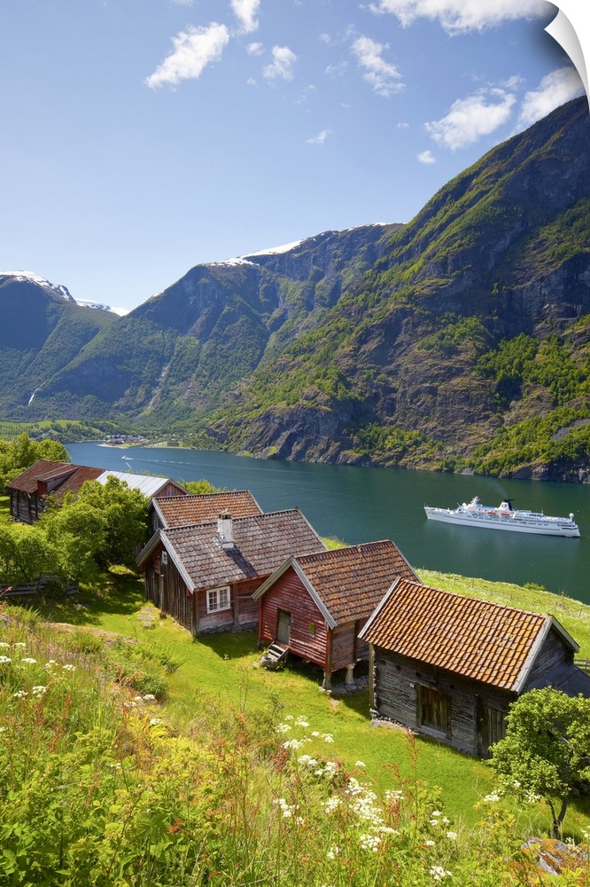 <p>Elevated view over Otternes Bygdetun, Aurlands Fjord, Sogn og Fjordane, Norway</p>