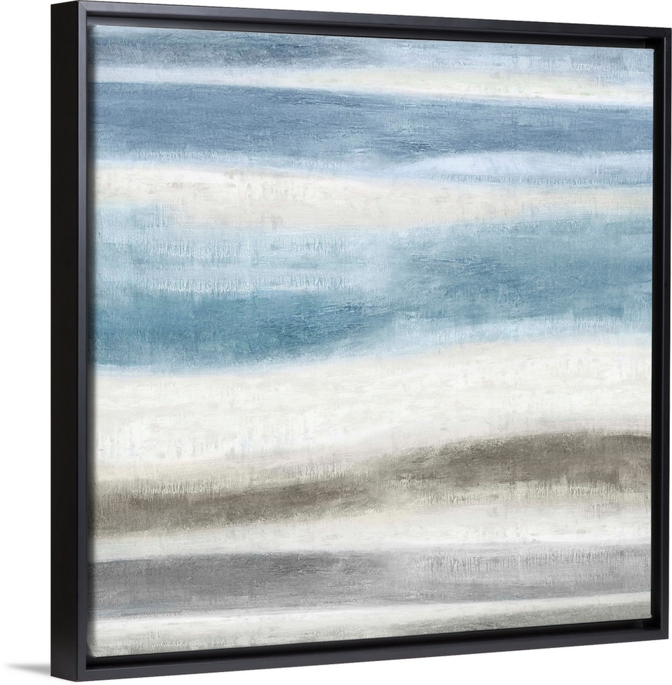 <p>Square abstract painting created with blue and gray wavy brushstrokes running horizontally across the canvas.</p>