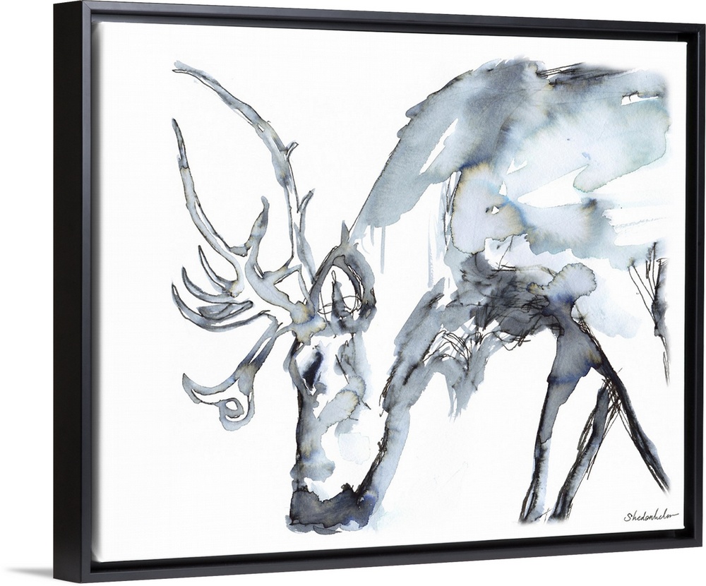 Art Contemporary Art Drawing Grey Wall Art Painting Kendra Shedenhelm Watercolor Wildlife Moose and Elk