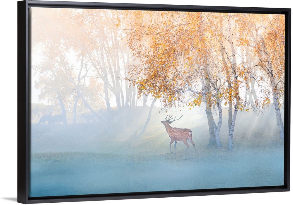 Fall Mist and Fog Trees Birch Photography Wildlife Moose and Elk