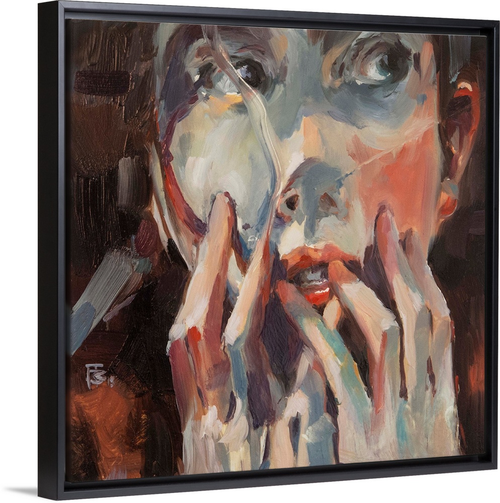 <p>Complementary colors and broad brush strokes add to the suspense of this contemporary portrait.</p>