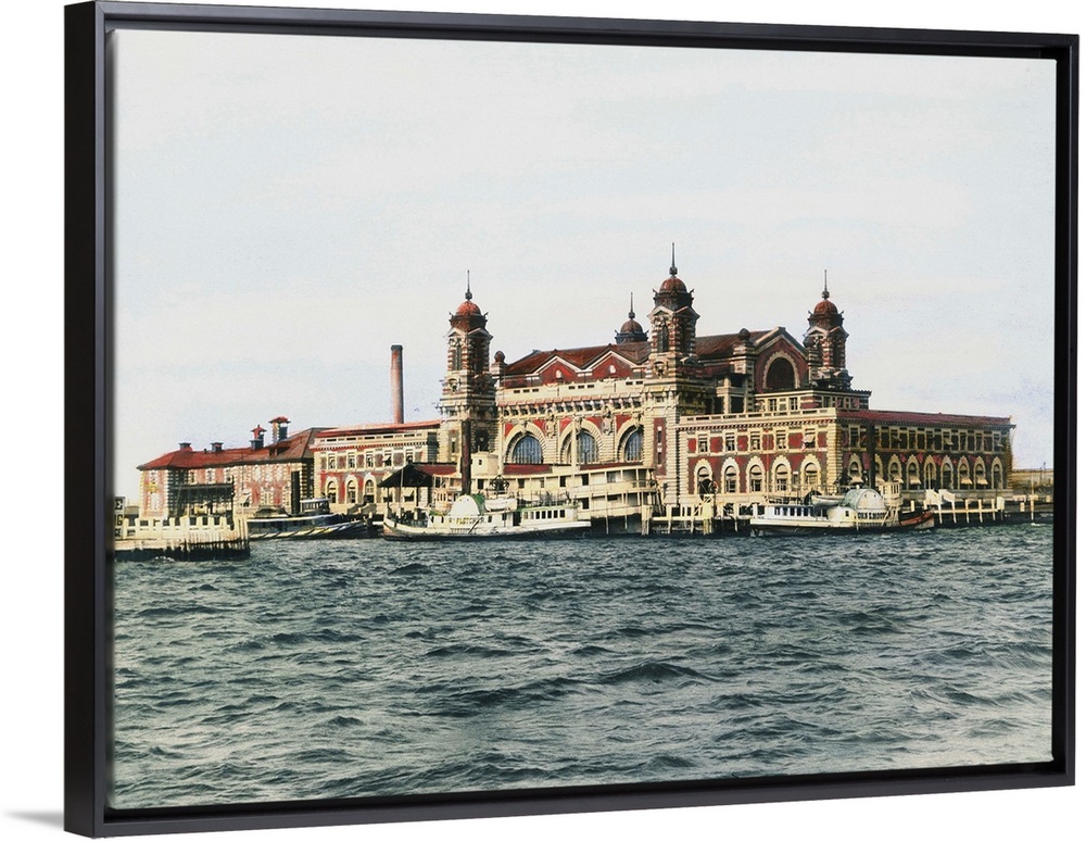 <p>The immigrant landing station at Ellis Island, in Upper New York Bay, 1905. Oil over a photograph.</p>